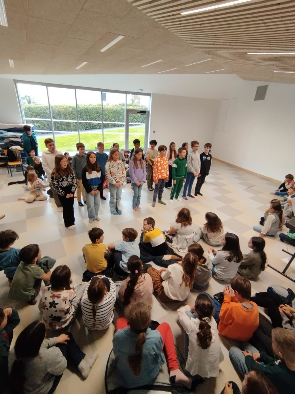 Les élèves des classes de CM ont bénéficié d’interventions en chant choral. Sara, intervenante de l’association MIXT (anciennement Musique et Danse) est intervenue chaque lundi matin auprès des 3 classes de CM pour travailler l’écoute, la mémorisation, l’attention…sur le thème des Arts. Ce lundi 30 mars les élèves de l’école ont pu assister au concert…