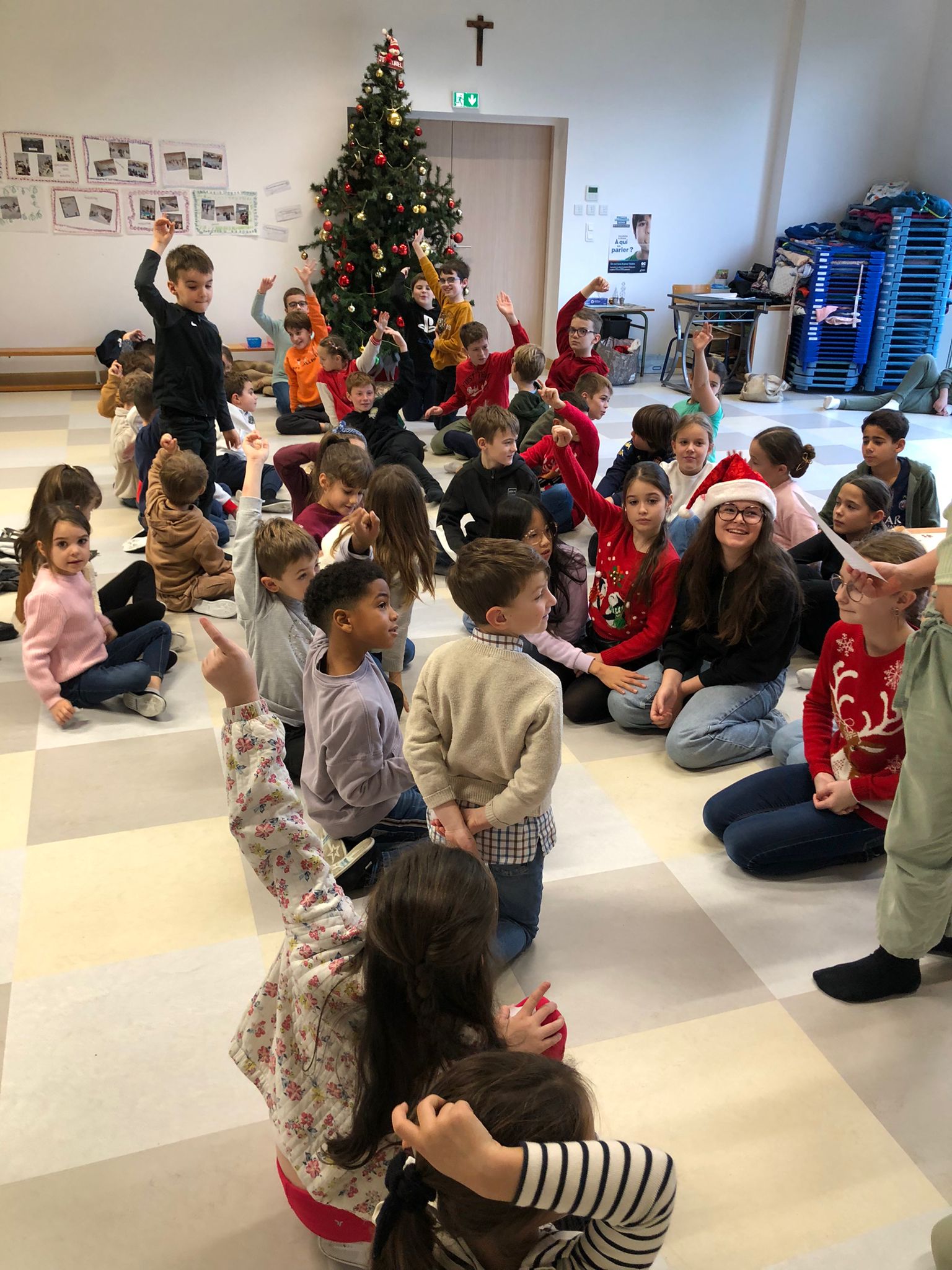 Ce vendredi matin 19/12, une visite surprise dans chaque classe… le Père Noël!